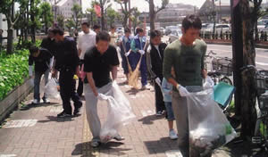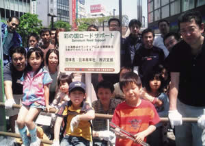 所沢支部は月に1度、埼玉県県土整備道路環境課の指導のもとに、所沢駅前と周辺地域のゴミ拾いと掃き掃除等に取り組んでいます。清掃活動は支部社員を5班(1班7〜8人)で編成しており、清掃活動には所沢社友会と近隣住民の方々や、多くの子供たちがともに参加して行っており、清掃後は参加者全員が昼食をとりながら意見交換したり雑談に花を咲かせるなど融和親睦を図る場となっていますが、この度の「彩の国ロードサポート団体」認定により市内清掃の参加者に大きな励みと喜びをもたらしました。